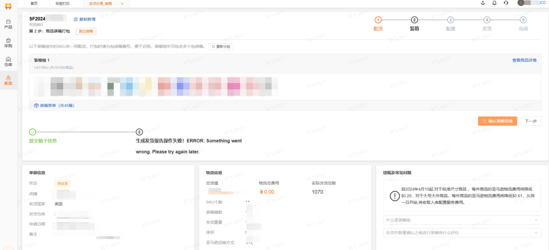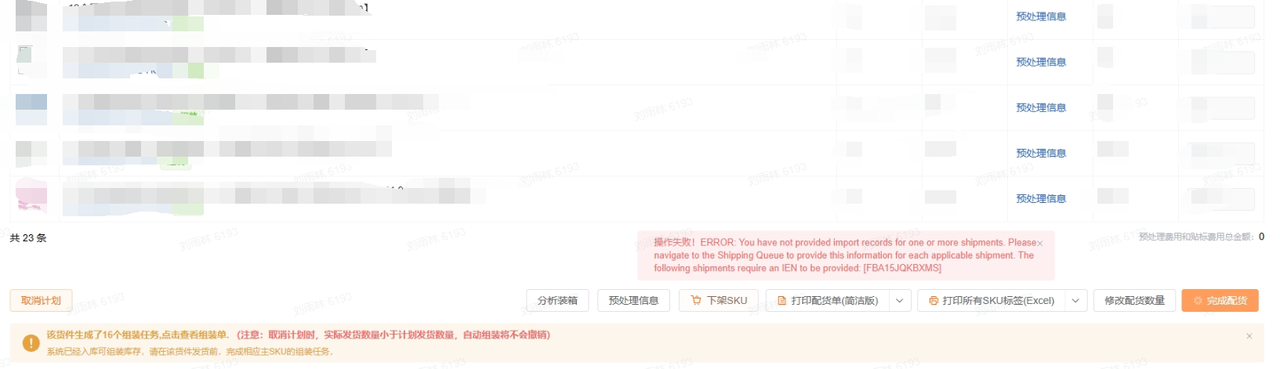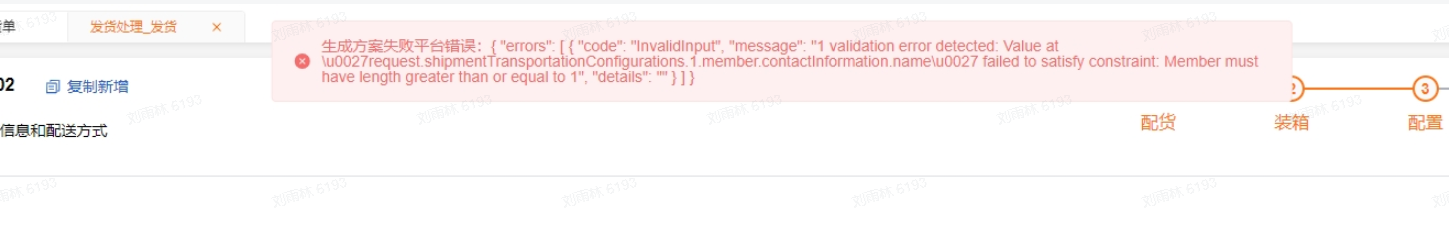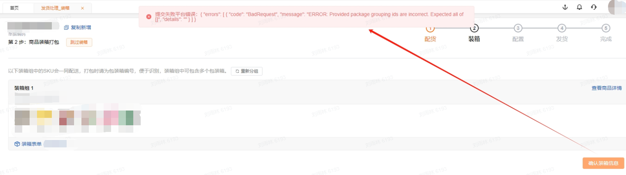 情况2:提交配货报错,错误提示预处理不对。
