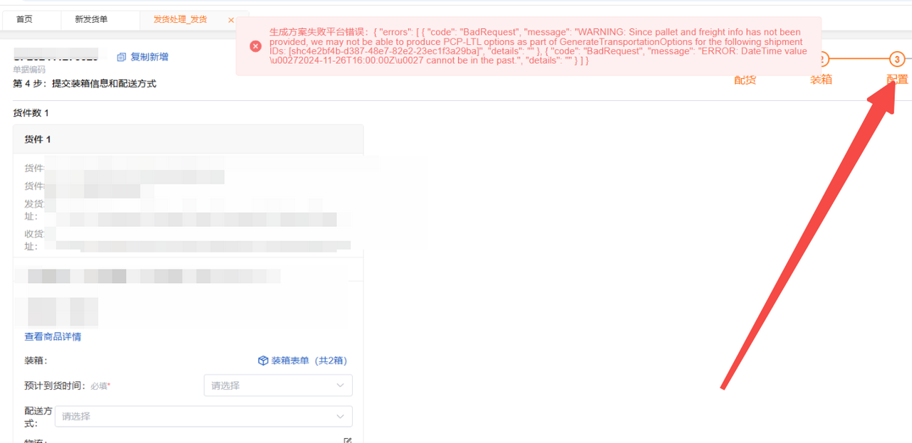 配置上面的发货日期太久了,要选择今天之后的日期