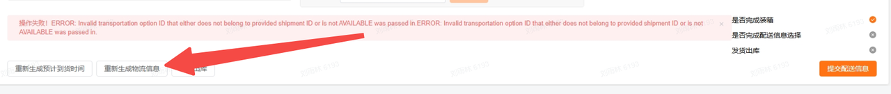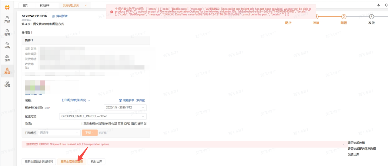 当出现ERROR: Shipment has no AVAILABLE transportation options 时我们需要点击重新生成物流信息,但是很容易会出现produce PCP-LTL options as part of