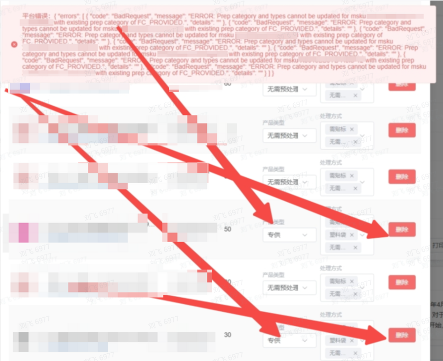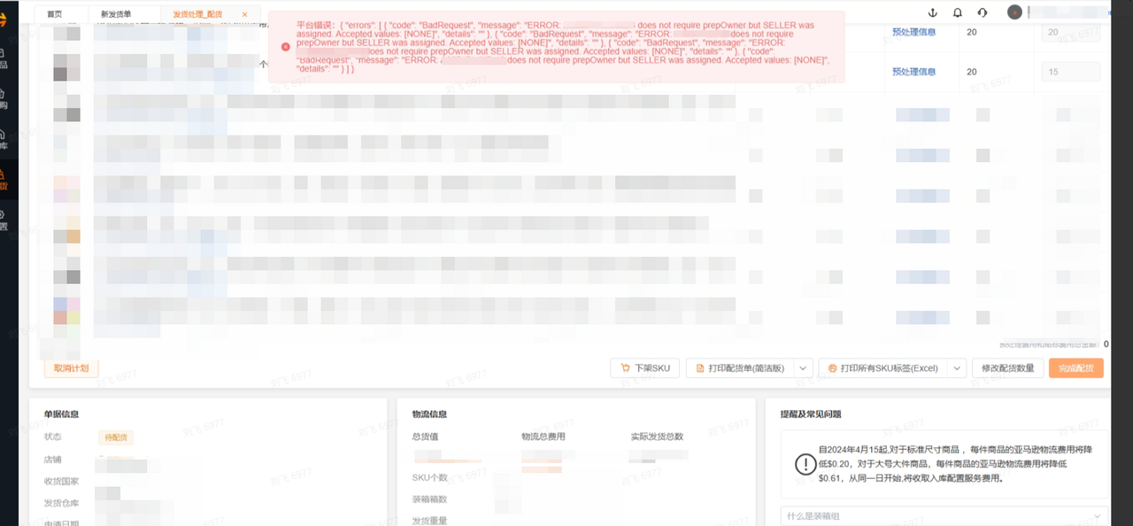 预处理有两个问题,第一:预处理人 有时候是卖家 有时候是NONE,会报如下错误 平台错误:{ "errors": [ { "code": "BadRequest", "message": "ERROR:XXX does not require labelOwner but SELLER was assigned. Accepted values: [NONE]", "details": "" } ] }