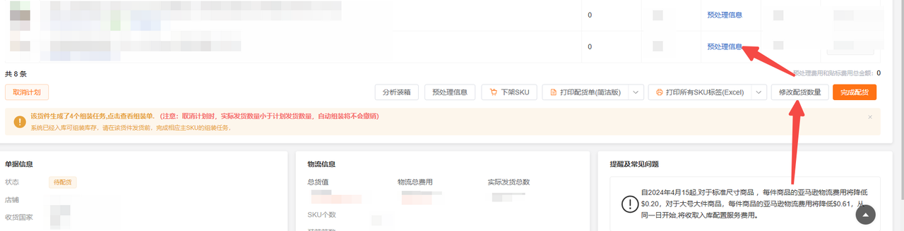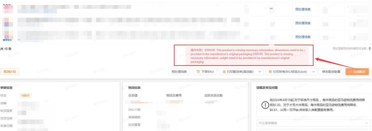 2,货件中的SKU必须有正确的预处理信息