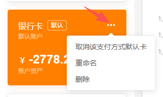 • 设为该支付方式默认卡 / 取消该支付方式默认卡:将当前账户标记为对应支付方式的默认账户,或取消其默认标记。默认账户在卡片上会显示红色“默认”标签。