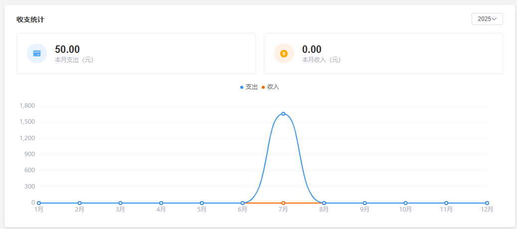• 饼图(PieChart):展示所选账户的资产分布结构(例如按支付方式或交易类型划分)。选中具体账户时,可能显示该账户的资金构成;选中总账户时,显示各账户余额占比。                              image.png