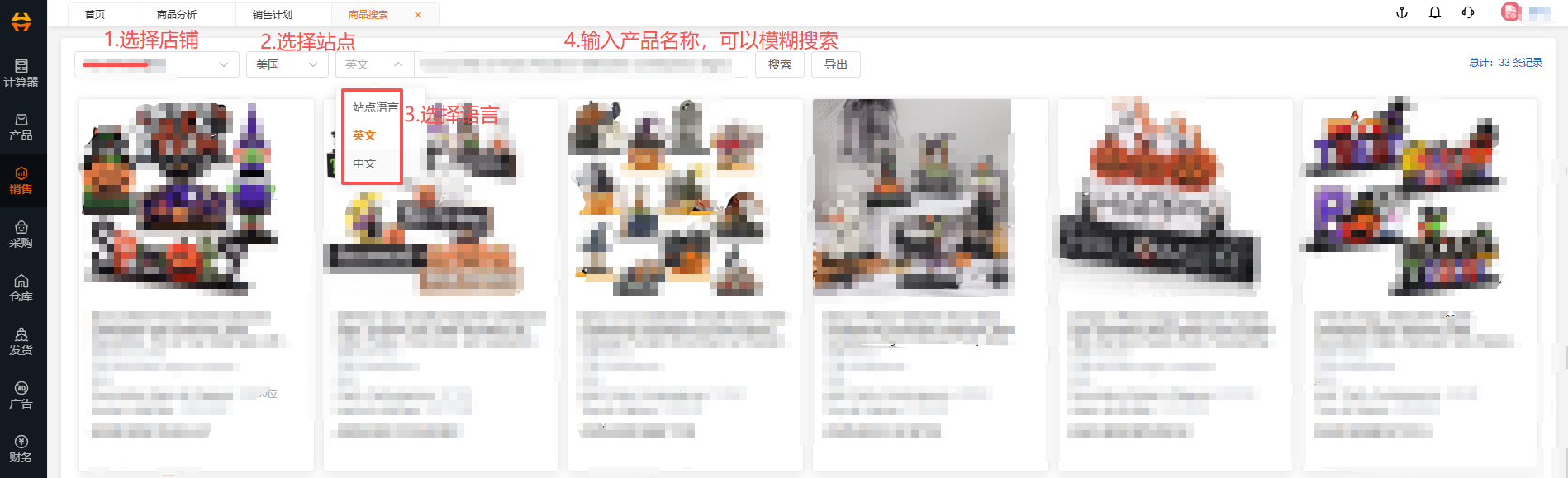 通过产品名称搜索,可以帮助运营人员快速找出类似产品及sku