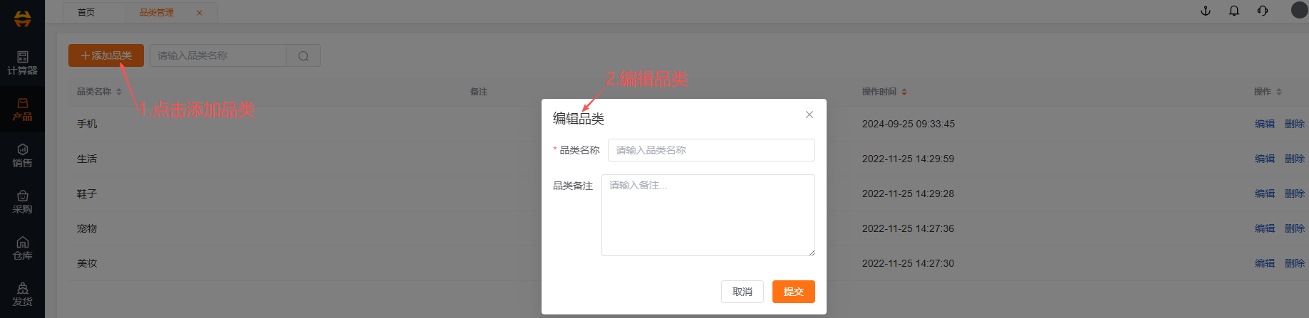 新商品上架前:先建好对应品类,再去 “产品” 模块创建 SKU 并选择该品类,确保分类规范。