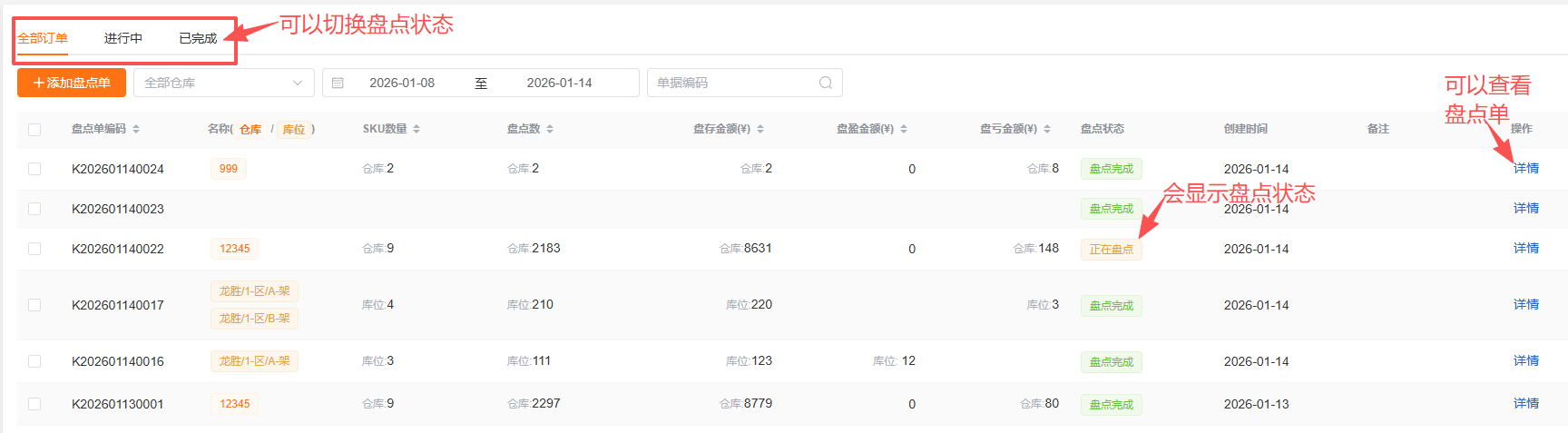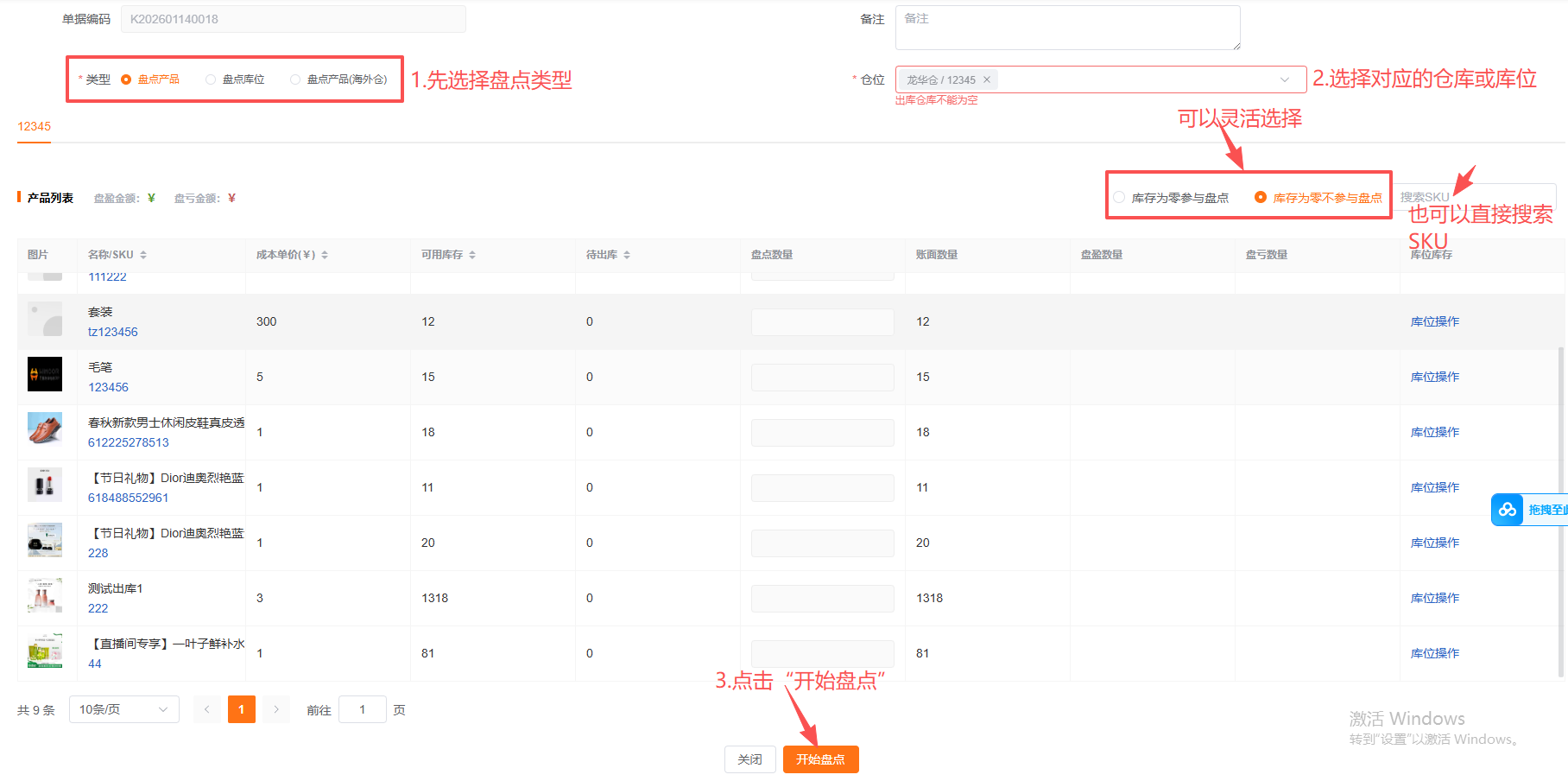 (2)盘点库位:
