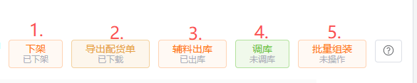 1.5对所选计划按步骤进行下架、配货、辅料出库和调库的操作