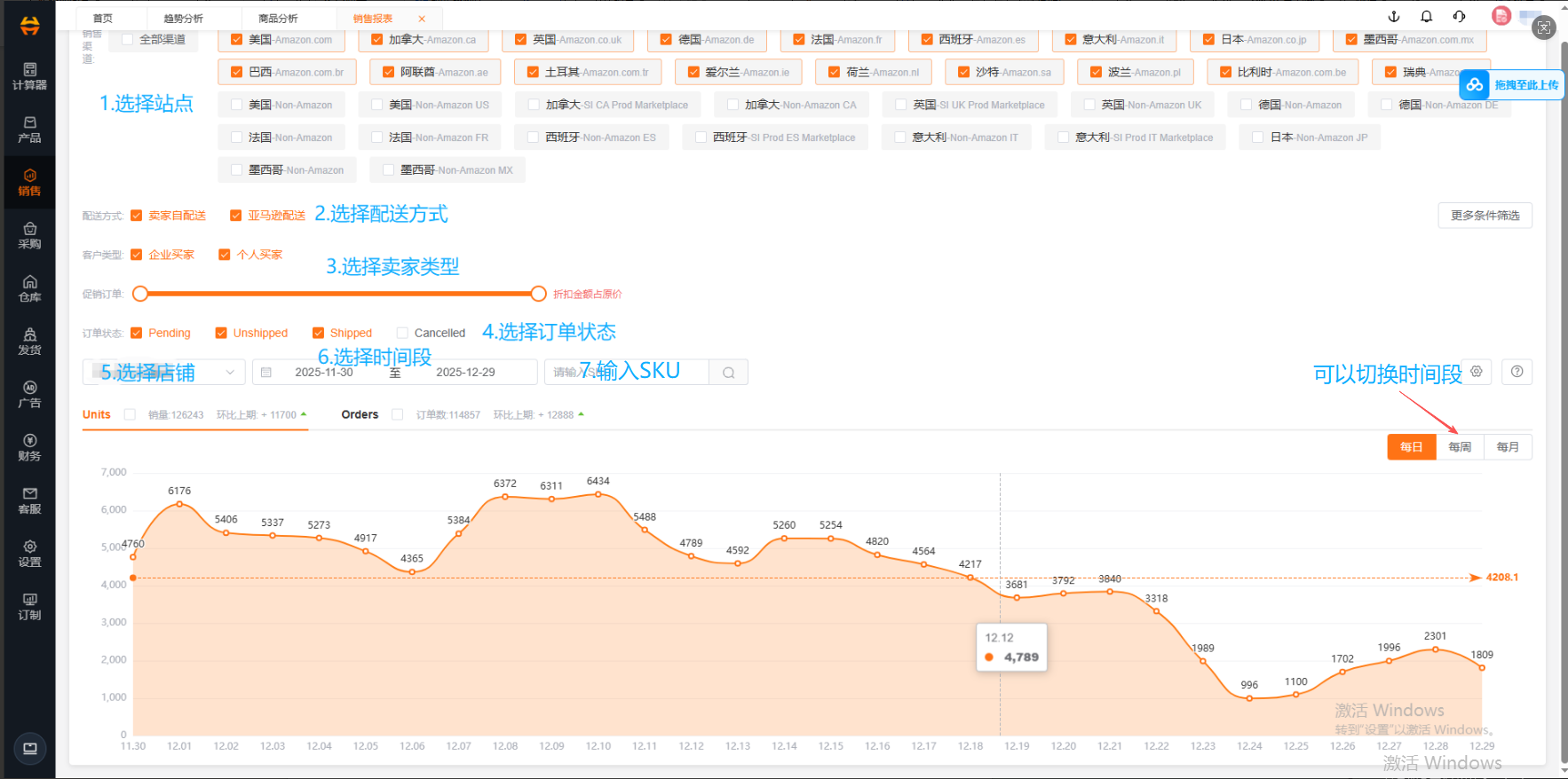 通过图表形式直观展示店铺销售情况