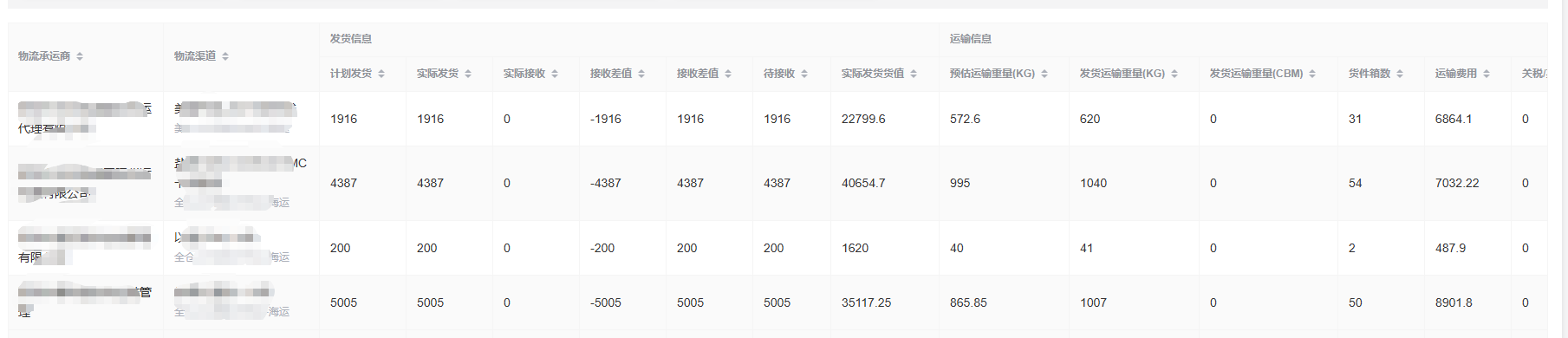 - 丰富的统计指标:包含计划发货、实际发货、实际接收、接收差值、待发货、待接收、货值、重量、费用、时效等