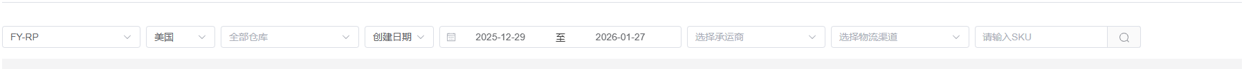 选择店铺、站点、仓库、日期范围、承运商、物流渠道、输入SKU