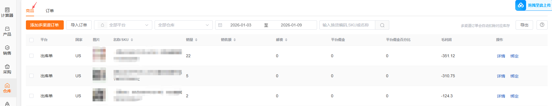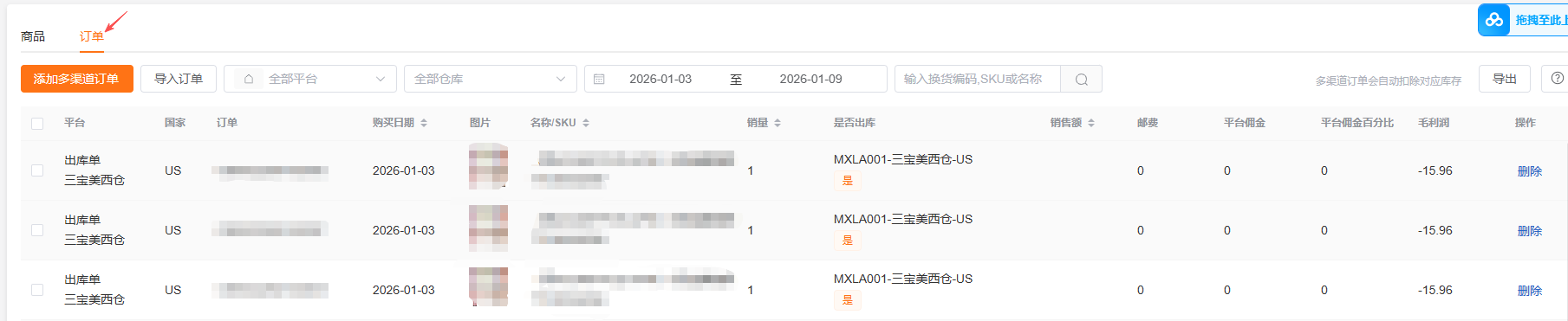 改功能用于统一管理来自不同电商平台(如亚马逊、eBay、Wish等)的订单数据。通过该模块,您可以查看、分析和处理来自多个销售渠道的订单,实现订单数据的集中管理和分析。