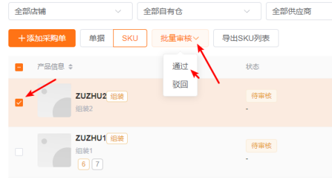 3.2.批量审核:勾选多个产品后点击【批量通过】或【批量驳回】;