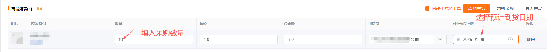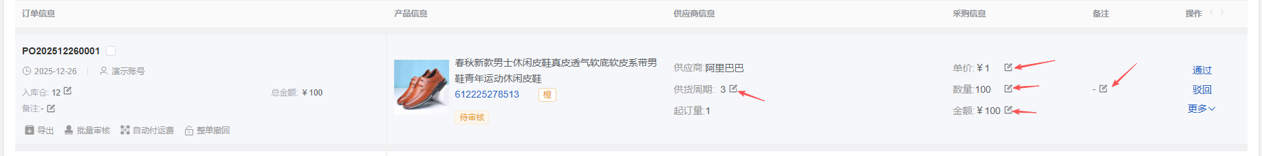 (2)可手动修改供应商、采购、备注等