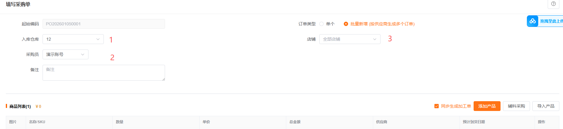 位置: 采购 >> 采购单 >> 添加采购单