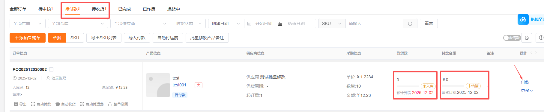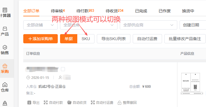 单据视图:按采购单维度展示,查看完整的采购单信息