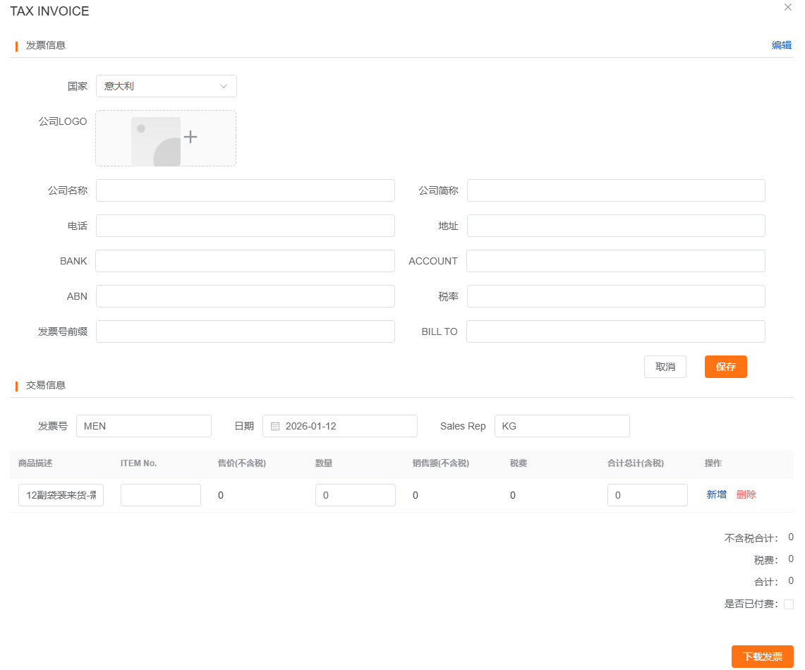3.2弹出开票对话框,填写发票相关信息,确认后系统将生成发票记录;