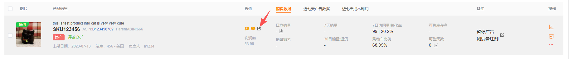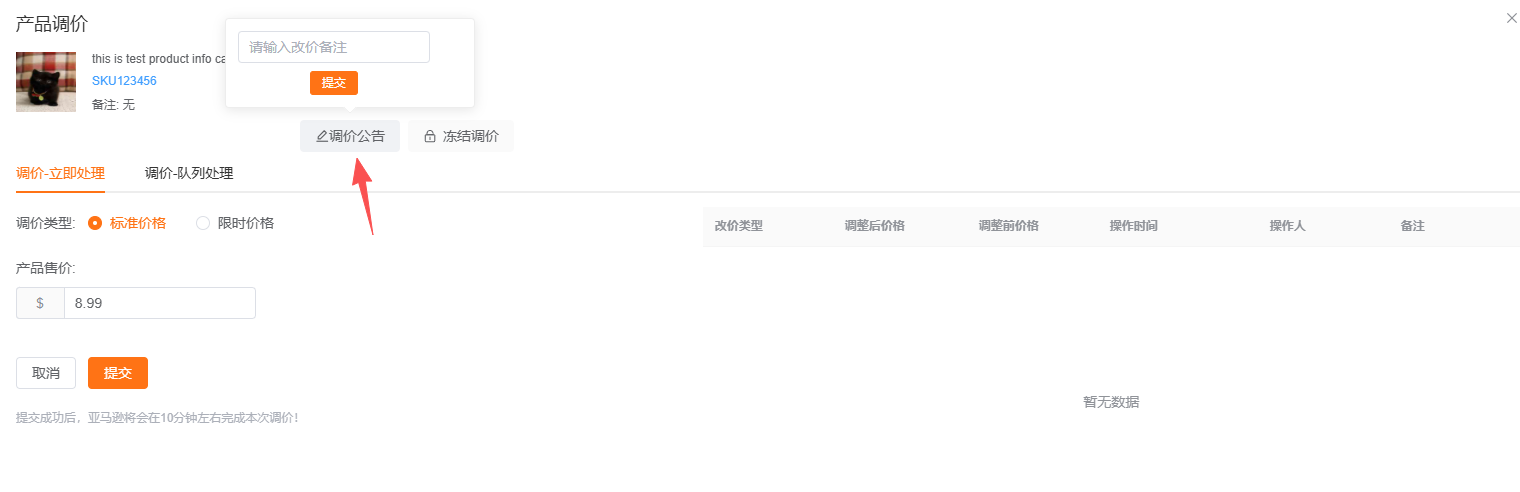 可以编辑调价公告,主要用于记录调价操作,便于团队其它成员查看产品调价动态。