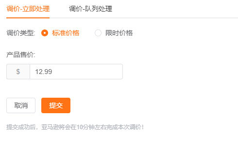 *由于亚马逊api的提交限制,系统排队处理时间一般不会超过1小时,如提交调价请求较多,则可能有所延迟。
