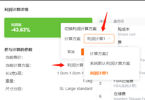 - 可手动切换计算方案(默认按店铺对应的方案计算)