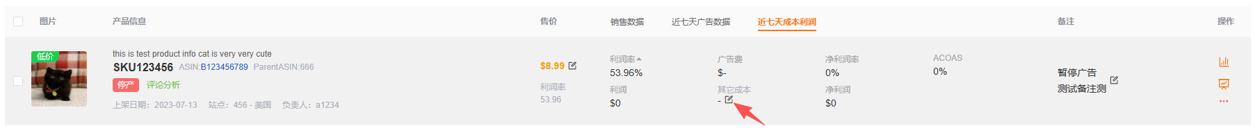 提示:手动输入的其它成本并未算入该页面的“利润率”当中,请注意。