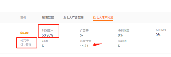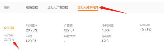 b.右侧【成本利润-利润率】:以七天平均价格计算;使用亚马逊报表的FBA处理费数据