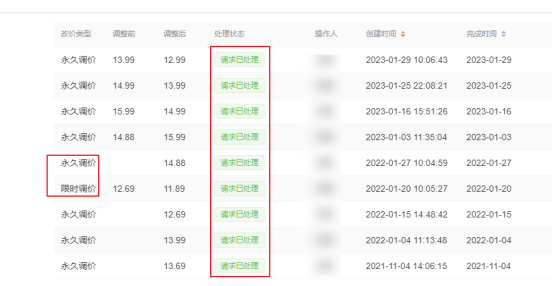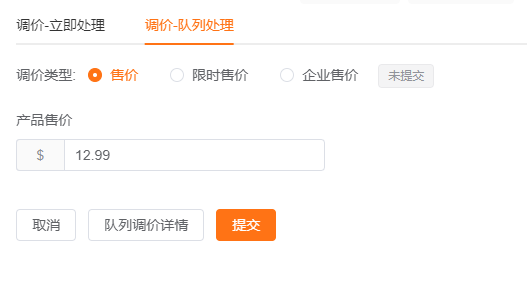 确认调价后,会进入“排队中”状态,提交修改成功后,会变为“请求已处理”状态。