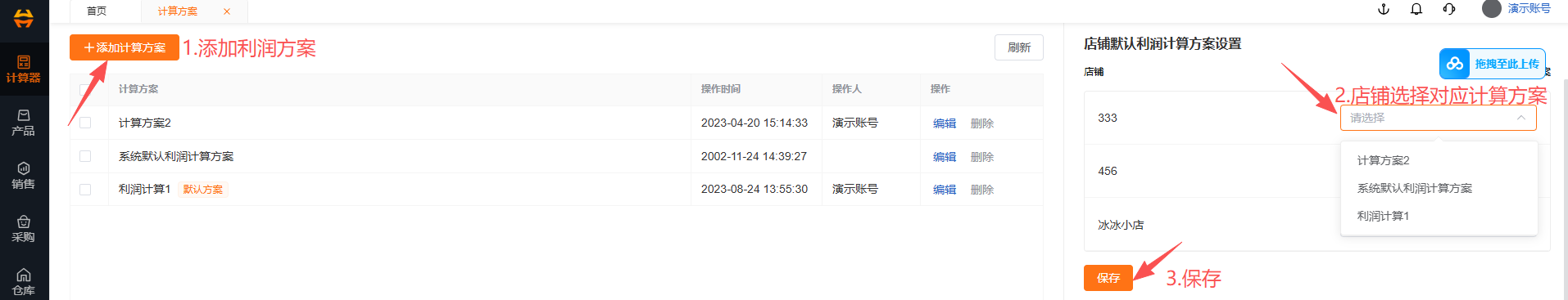 1.2.添加计算方案并绑定店铺