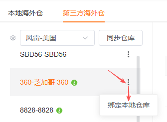 用于将第三方海外仓的数据同步到本地虚拟海外仓(因为不同的第三方海外仓服务商报送的内容格式都不一样,系统无法进行统一编译,因此我们设置了本地虚拟海外仓进行转化)进行分析汇总,将第三方海外仓绑定自设的本地虚拟海外仓即可进行数据同步。