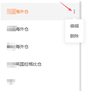 点击仓库条目右侧的更多图标,选择"编辑"选项,可以修改仓库信息或者删除仓库(系统会先检查仓库是否可以删除,如果存在关联数据会给出警告提示)。