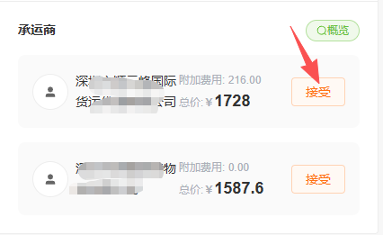 4.3接受报价:对满意的报价点击"接受"按钮