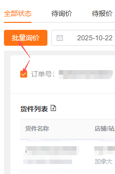 3.2发起批量询价:点击"批量询价"按钮