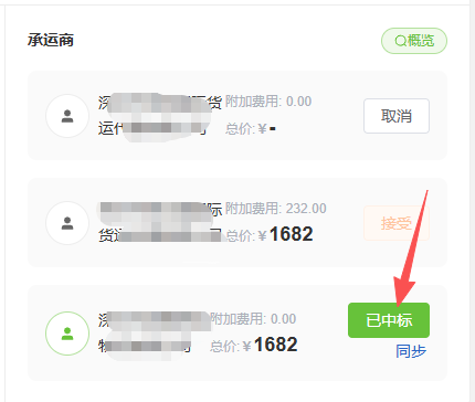 4.5状态更新:接受后承运商显示"已中标"状态