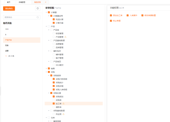 页面显示的是含手形标识的功能,勾选对应菜单后即可享受相应的权限