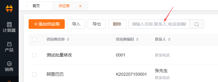 在搜索框输入 “阿里巴巴”,即可筛选出对应供应商条目;