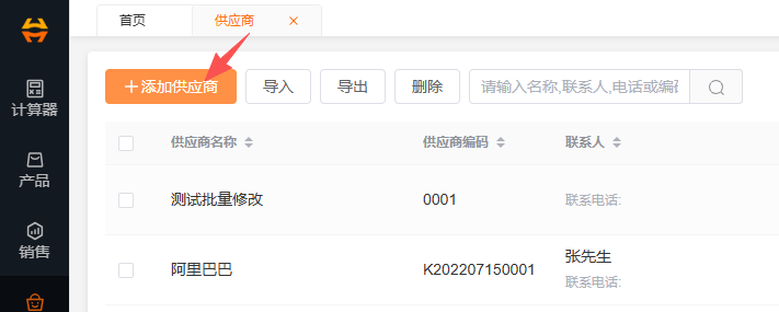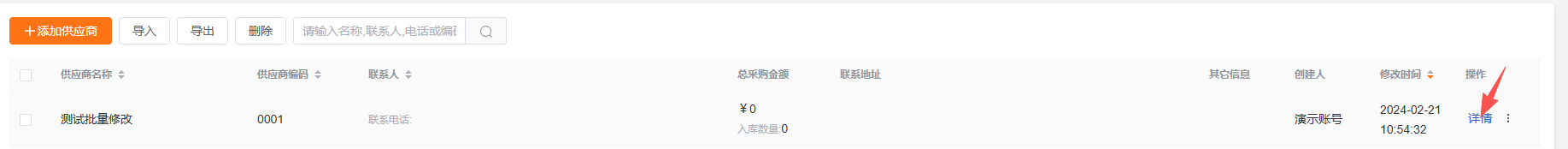 点击 “添加供应商”→填写信息→保存,完成新供应商录入;