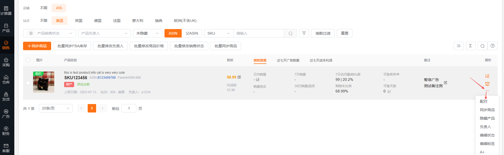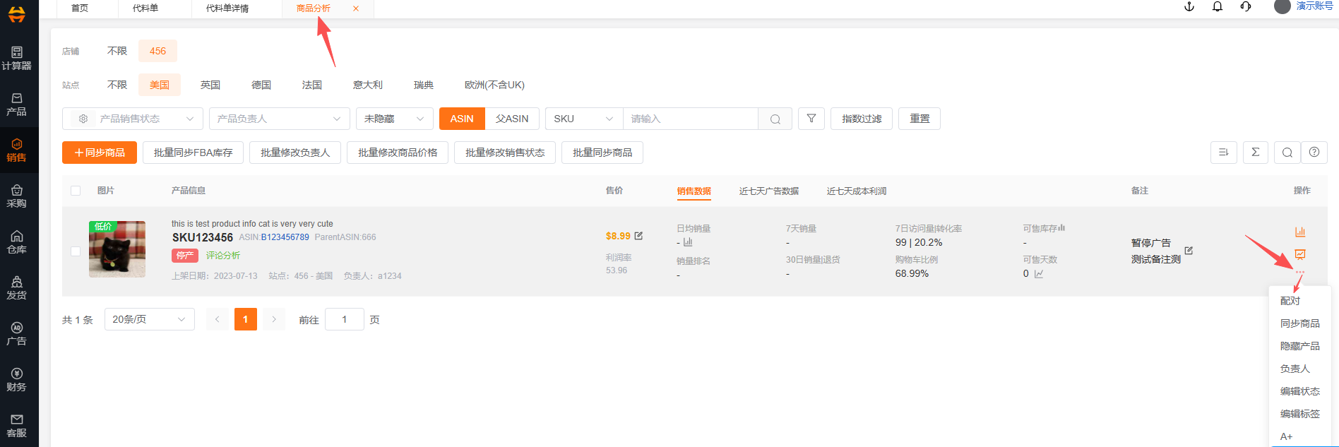 2.2输入对应本地SKU,在结果产品列表中点击【配对】